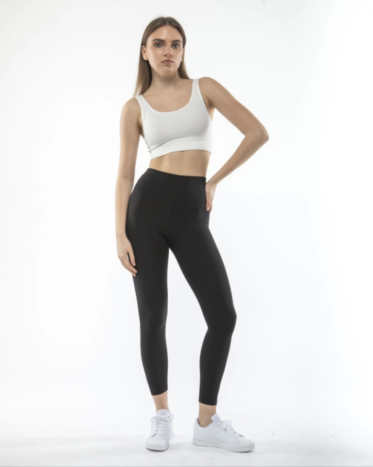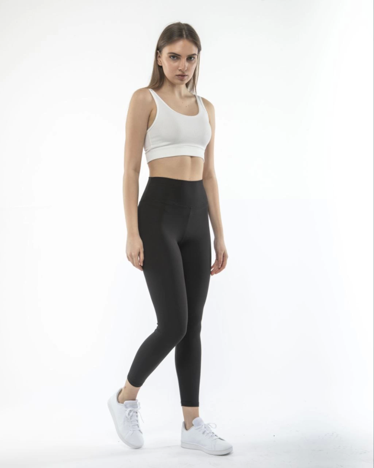 Yüksek Bel Sporcu Düz Tayt - Siyah