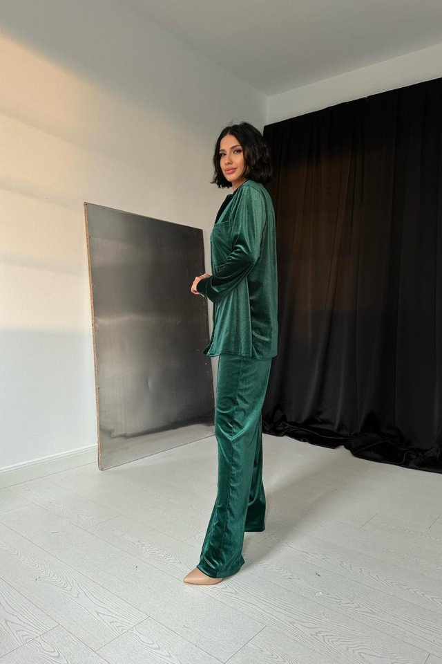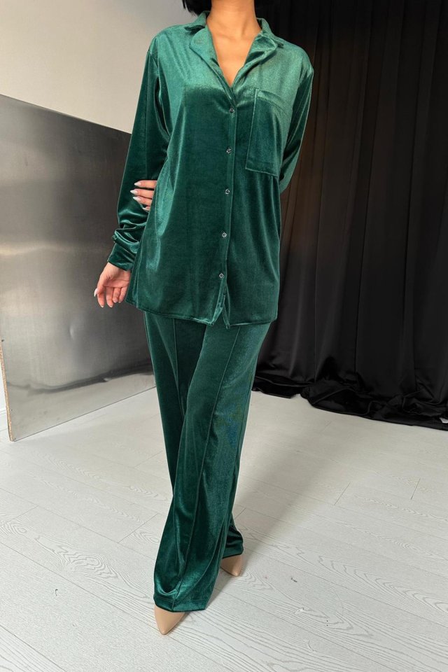 Zümrüt Klasik Gömlek Ve Pantolon Kadife Takım